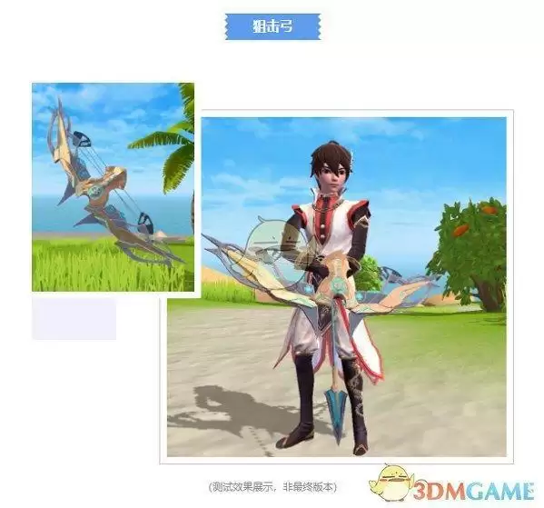 狙击弓可由弓类武器改造而成,为远程武器,需要装备狙击箭,每次发射一支箭,将造成高额的单体伤害,还可在原地进行二段蓄力造成更高伤害