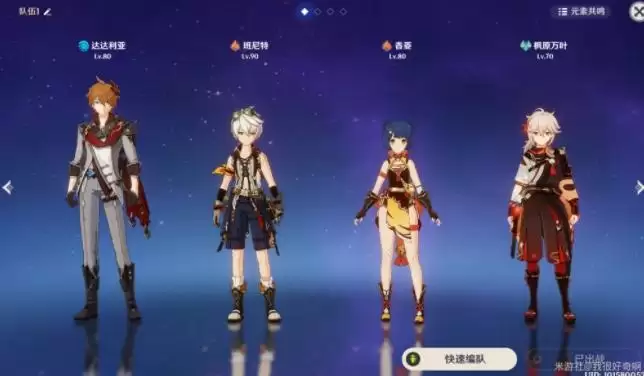 个人认为公子也不是特别适合追忆四件套。 以目前主流的万达国际队为例,配队为公子+班尼特+香菱+万叶。