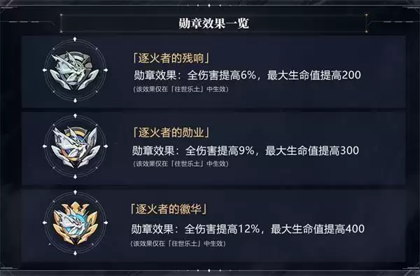 ◆勋章效果一览(勋章的有效期为14天)