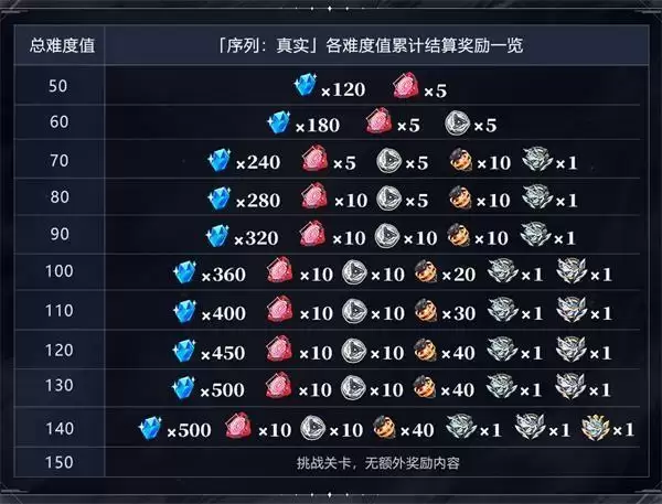 各难度值奖励如下图所示: