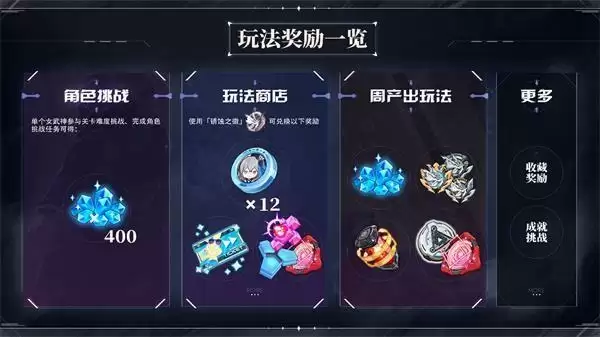 在首期的玩法商店中,舰长通过挑战关卡、成就任务、角色养成等方式获取「锈蚀之徽」,可用于兑换「理之律者」晋升印章、加速券、三分结晶、聚能·空间透镜等奖励。