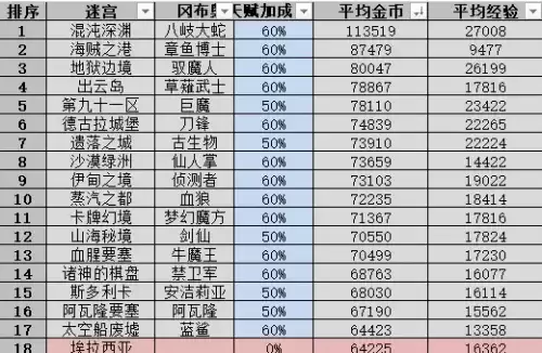 下图排序为扫荡金币