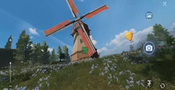 如果你照相的位置对,就会如下图一样,出现一个绿色的符号,点击拍照后就能收集到明信片。