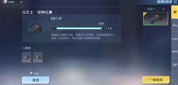 2、准备好修复材料,修复的材料就是少量的制作装备的材料,它的需求量会根据玩家耐久消耗的百分比来决定;