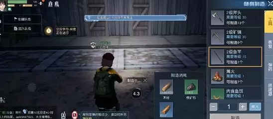 满足了上述的两个条件之后我们就可以制作2级鱼竿了,需要用到木材铁矿石等资源。