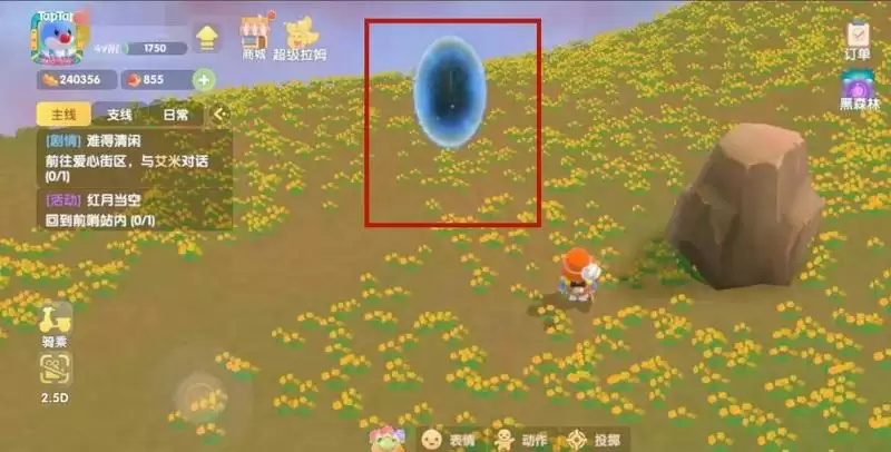 3、进入传送门,到达荆棘丛林地图,然后点击下方的黄色果实;