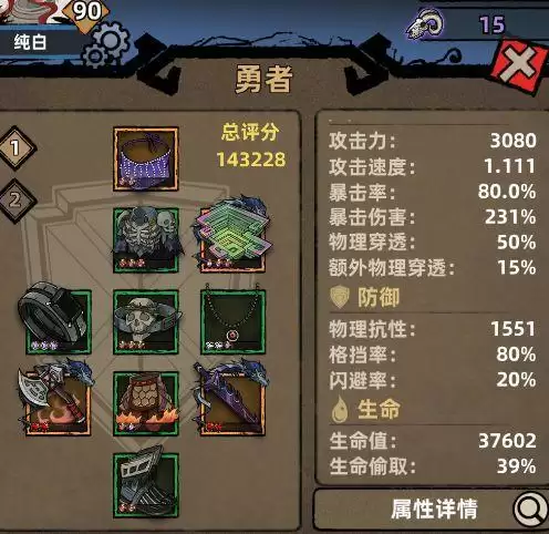 2、属性上限:格挡和暴击80%,吸血40%,闪避20%,其余均无上限。