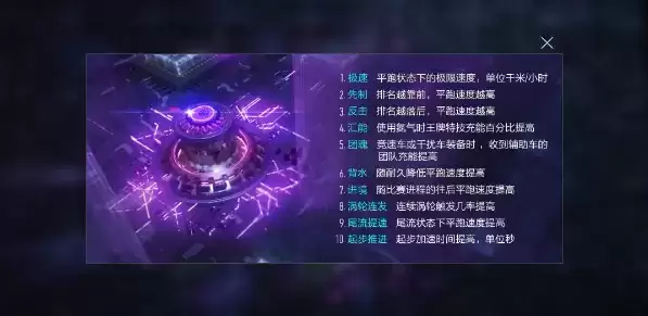 玩家的车辆可以装置六种不同的芯片,芯片的属性共有十种,增益数值与芯片的品质挂钩。根据芯片的效果会影响适合的车辆,团魂仅适合竞速车或干扰车,而对辅助车无效。
