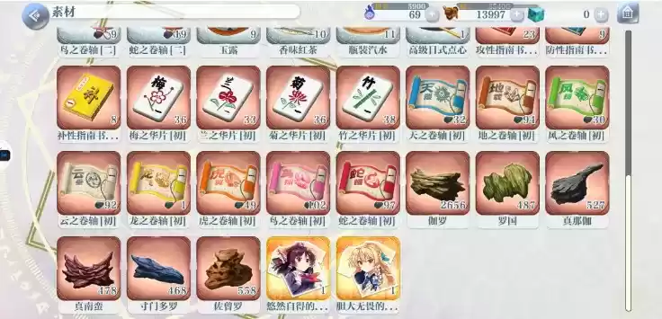 绘札强化,消耗一些材料和铜钱进行强化,增加面板属性,强化素材:目前只有四种图标,对应的是四种材料。