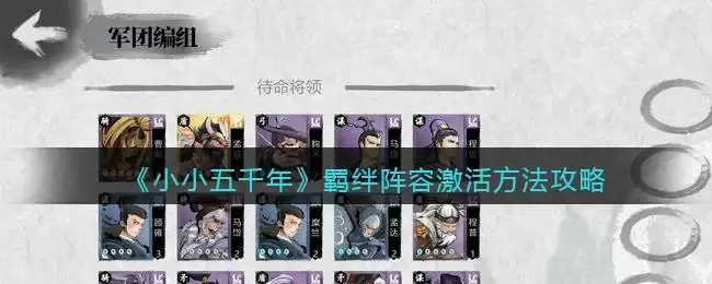 《小小五千年》以三国为起点,还原三国鼎立,群雄并起,惊心动魄的战争场面,游戏中羁绊阵容怎么激活呢?想必很多小伙伴不清楚,下面小编就给大家带来了《小小五千年》羁绊阵容激活方法攻略介绍,一起看看吧!