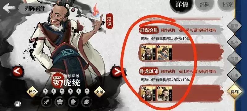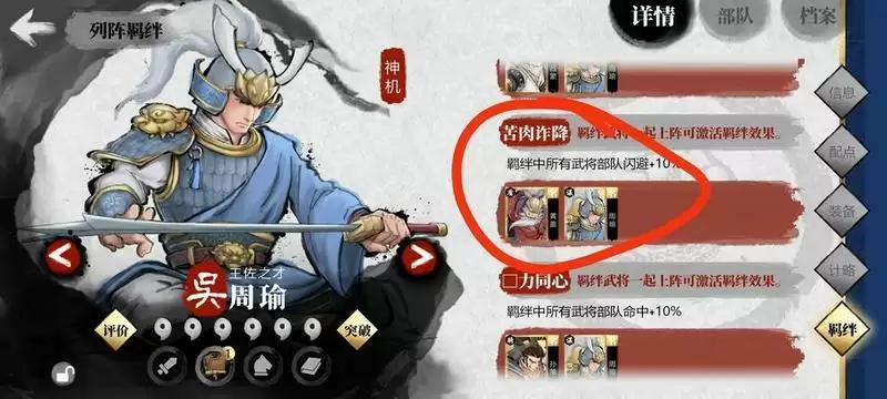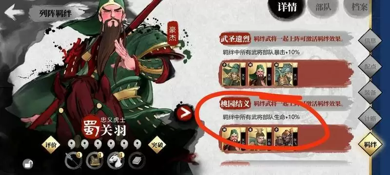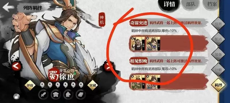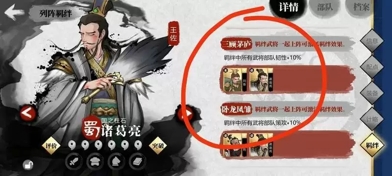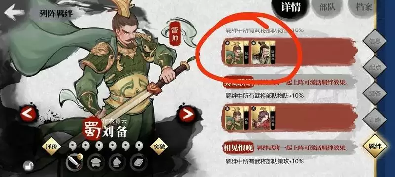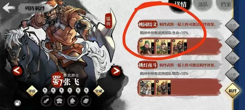 羁绊阵容 激活 大家看羁绊就很好理解了 画红圈的就是 我8个武将触发一大堆羁绊