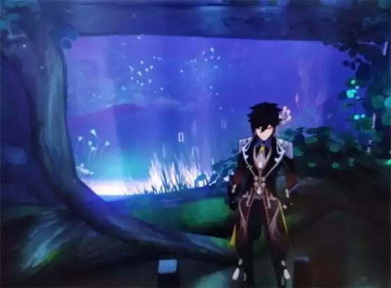 旁边有个雷巨石,可用大剑,岩系技能击破,进去后……,左上角有宝箱如图,跟随雷仙灵,解锁一个普通宝箱