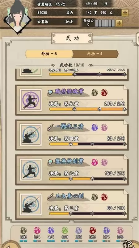 跟着任务走,美女6重+玉女功9重,其馀+属性