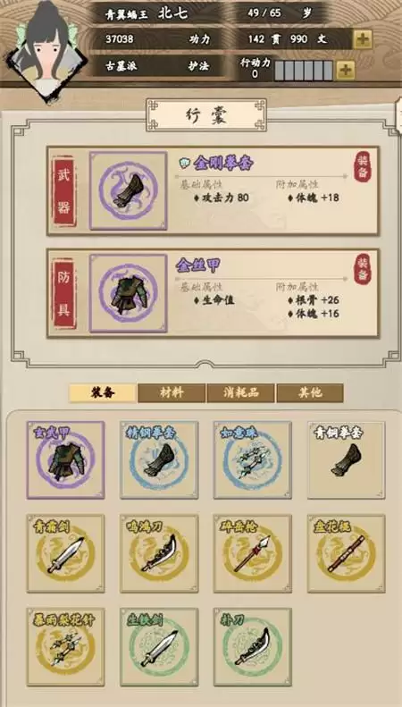 然後开启江湖,看个基础属性的广告拿丹去卖22贯
