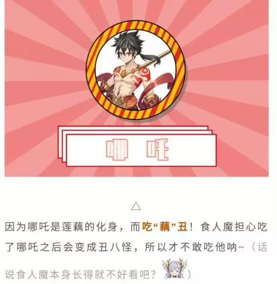 因为哪吒是莲藕化身,吃藕丑,食人魔担心吃了它会变丑