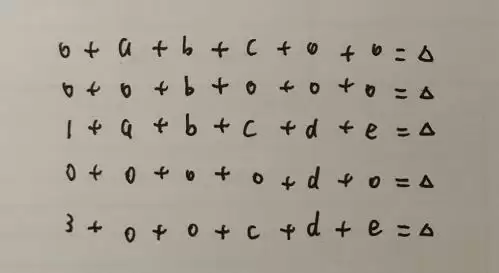 我们可以设△为一个4的倍数,算出abcde的值