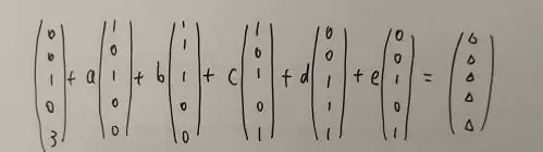 现在,我们第一个转6次,第二个转4次,第三个转2次,第四个转4次,第五个转3次就可以了。由于矩阵满足加法交换律,转动没有顺序要求。