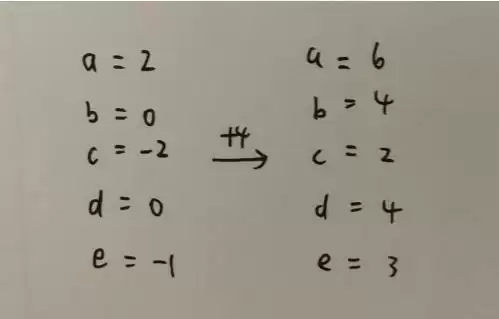 发现结果有负数,而我们不可能让方块逆向旋转,那就都加个4,让它们变为正值。