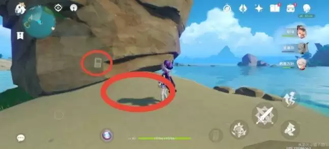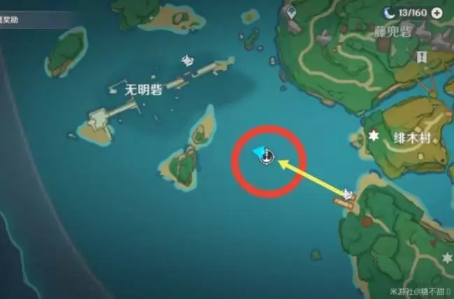 按着顺序找完之后,来到这边的船锚点,坐船往前开,就可以看到一个大石头块的地面