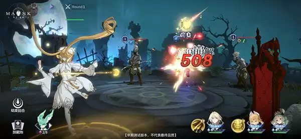 游戏战斗为回合制。每一回合上场角色技能随机发放,需合理规划每回合的技能利用,利用【心力解放】强化技能、激活额外的EX技能效果,将敌人的心智击溃。