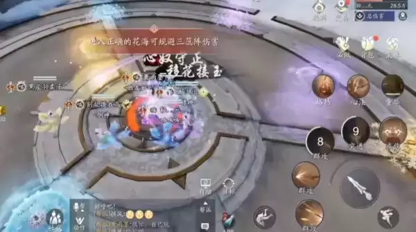 白鹭洲血量分别在90%、70%、50%、30%、10%的时候释放5波三蕊阵。在90%和70%的时候场上会出现6个花丛,每种颜色各2个,这两个血量的花丛颜色一致。等BOSS进入释放技能的血量提前准备即可