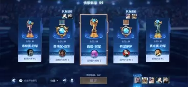 省级以下的比赛是非固定队伍,玩家可以在每轮自由组队,由系统根据实力和轮次,匹配成相应队伍挑战每轮的对手。