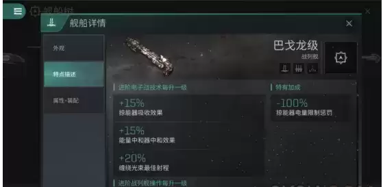 但是,有一个势力的舰船却专精掠能器,能使其效果不受限制,并发挥得淋漓尽致,它们就是血袭者同盟。其舰船的专属特性加成能使掠能器的电量限制惩罚-100%,也就是说哪怕目标的电量比自身低,也能一直吸取。同时,掠能器和能量中和器的效果也会被大幅提升,这也使得血袭者同盟的舰船直接攀上顶尖之列。