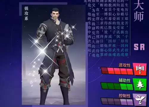 大师在SR中也算是比较弱的一个角色了,技能只是很简单的纯伤害与辅助性的提升,是前期过度用的强攻角色。