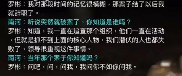 得到密码箱里的全部物品线索后回去烧烤摊边上和罗彬再次进行对话,点击“当年那个案子你知道吗?”
