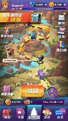 在配置好卡组后,我们就可以踏上征程了。在主界面我们可以看到指挥官在联赛中的历程。每场战斗胜利,都会赢得一定数量的奖杯,,相应的如果失利的话,也会失去一定数量奖杯。整个联赛的过程,就是指挥官不断向对手发起挑战,并赢得胜利的过程。随着奖杯数量的积累,就可以在主界面解锁相应的金币、钻石奖励,还可以解锁更多强力卡牌,供后续的战斗使用。所以~赶紧按下“对战”按钮,去寻找一个实力相当的对手来验证自己的战争智慧吧。