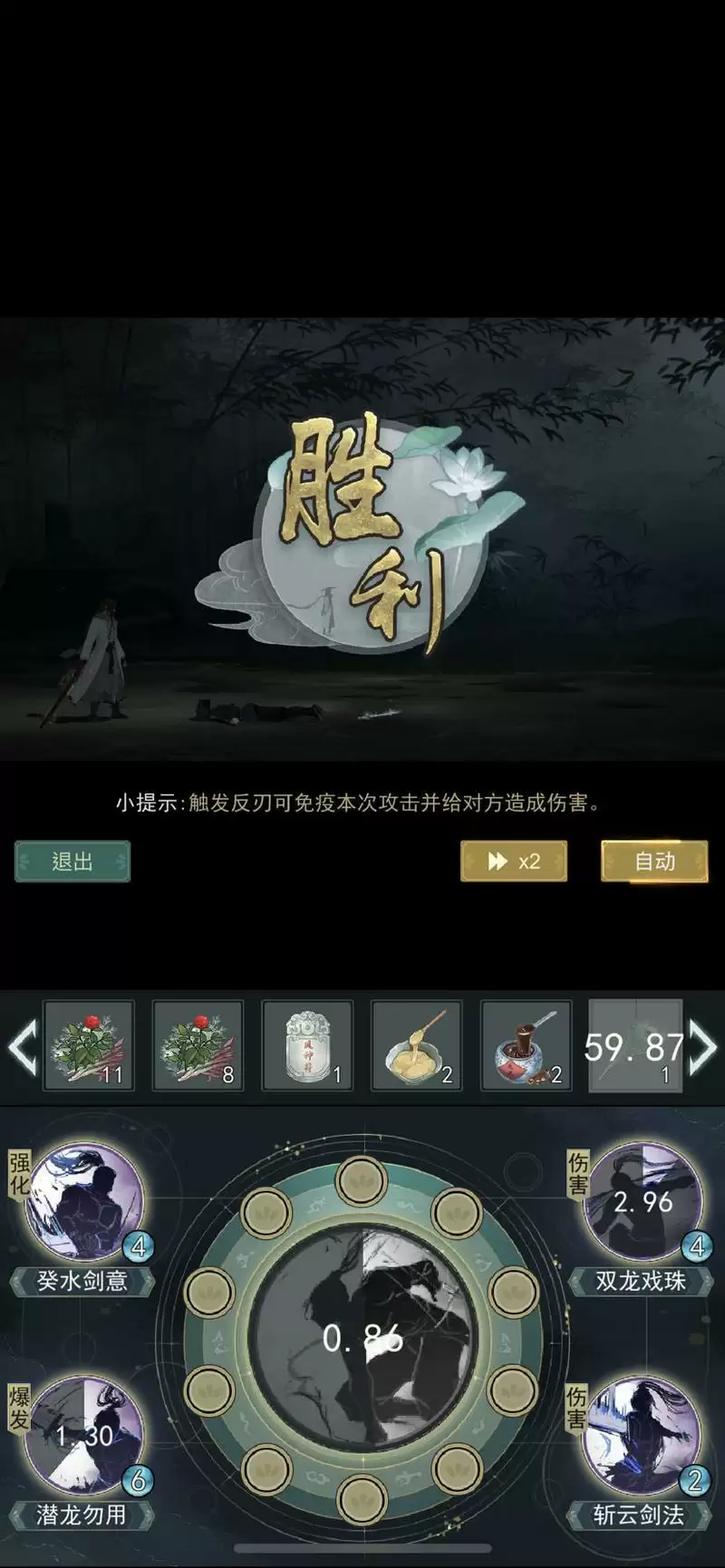 进入战斗 拼脸中一两个技能+反刃后 丢孔雀翎(可能miss)破定秒杀 没中退出SL