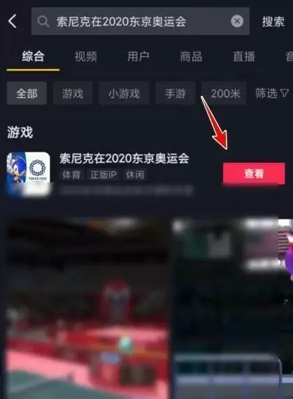 进入抖音,点击右上角的搜索按钮,搜索并进入索尼克在2020东京奥运会,点击游戏后方的查看,进入后继续点击选择下载即可。