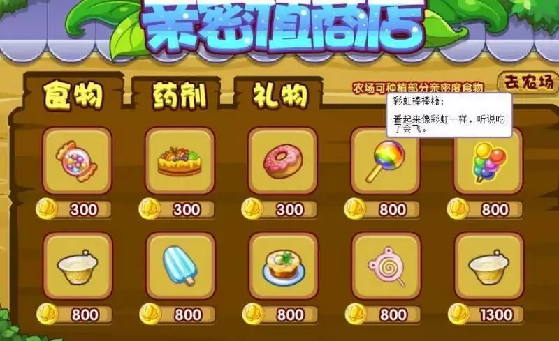食物、药剂、礼物可以在商店购买