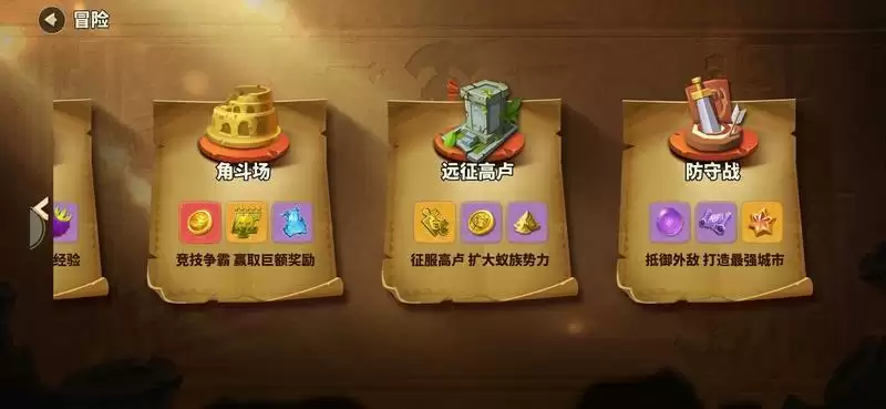 进阶英雄、升级建筑需要大量的物资,而采矿场和粮田都是很鸡肋的存在,这两个资源的主要获取方式为对战以及征服城池。