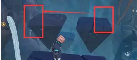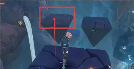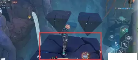 如图所标出来的石头,跳过这块石头之后,去跳中间的闪烁金光的石头。
