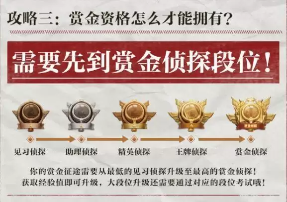 你的赏金征途需要从最低的见习侦探升级至最高的赏金侦探!