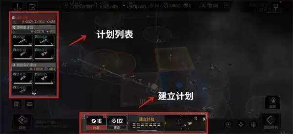 计划圈的功能使用主要由计划列表和建立计划两个基本功能组成。建立计划板块主要用于建立计划圈,可以规划自己想要建立计划的位置和范围,探索后也可以详细得知计划圈内的信息;计划列表板块可以详细观察自己建立计划的详细运作情况,例如工程舰船,每小时开采量是多少或者舰队航行到达目的需要多少时间等,这些信息都可以通过观察计划圈列表获得。