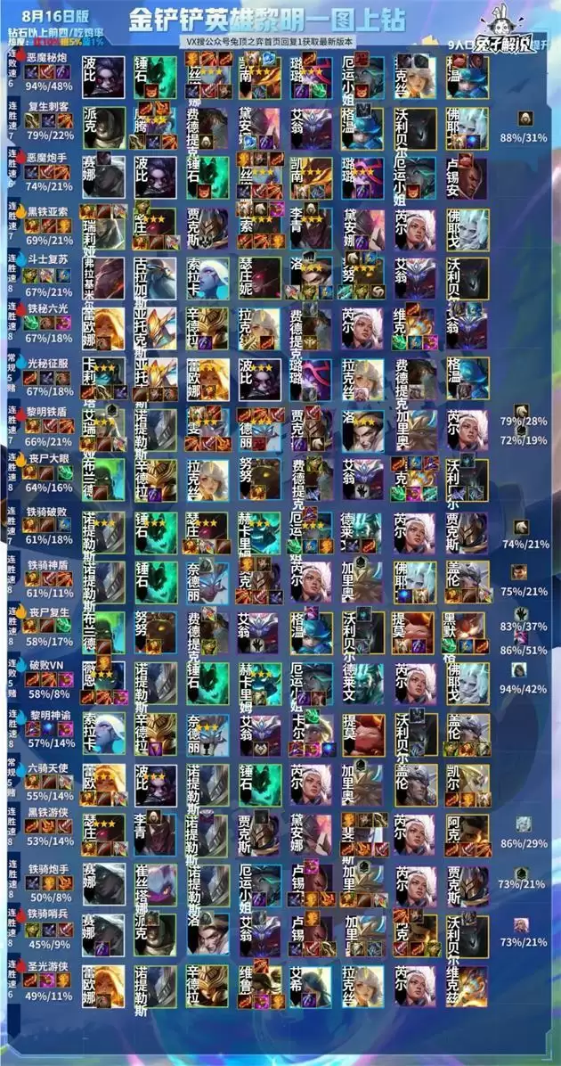 阵容从上到下是阵容排名,按照最终强度来排序