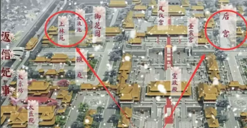 1、进入游戏,离开寝宫后,点击后宫或者上林苑