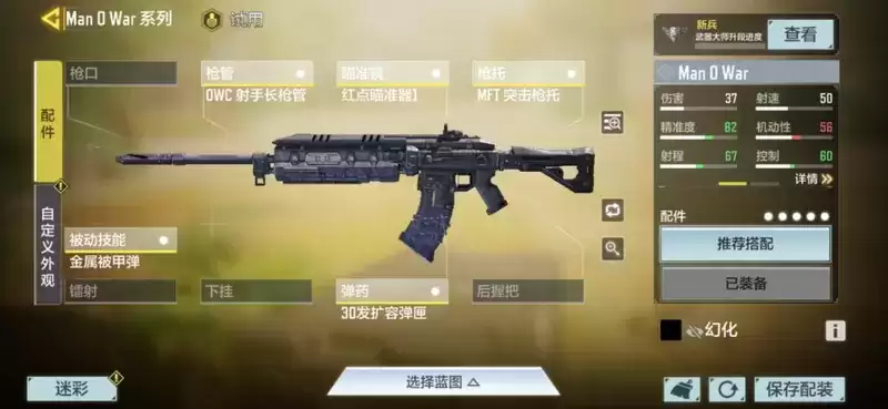 一体成型消声器、经典红点瞄准镜、M67子弹、OWC战术激光以及被动技能金属被甲弹