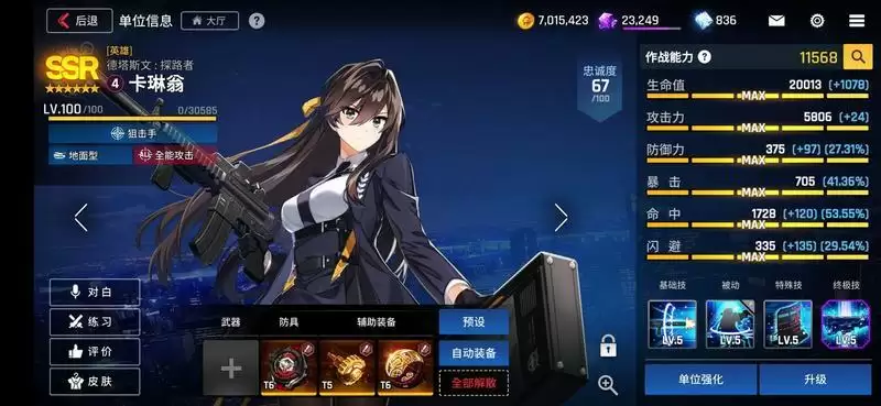 卡琳,对空中单位有增伤效果,远程普攻是炮形态的AOE伤害,近战是机枪,椅子空狙基本一炮一个,打空觉基本2到3炮,卡琳作为狙击手,输出完全没有任何问题,硬伤在于攻击机制,卡琳有着非常严重的攻击前摇,普攻前大概有3秒的准备动作,如果敌人脱离攻击范围,下次普攻时又会进入前摇,全程只能用俩字形容,蛋疼,被动还要被贴脸时才能触发,就这脆皮狙贴脸基本必死。