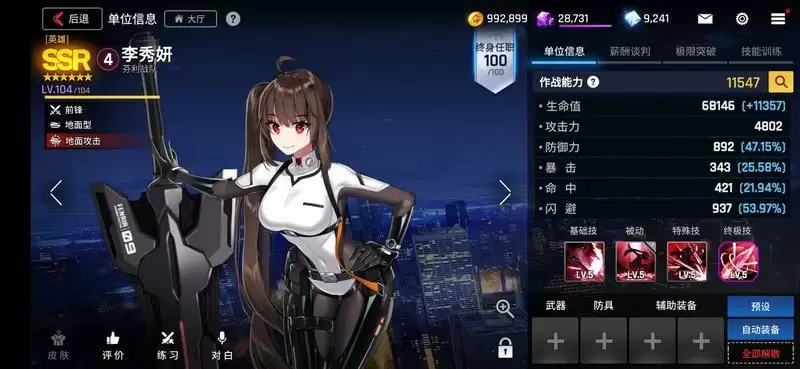 猎犬,作为R卡守备角色,更容易达到110级,这个面板几乎没有理由不去练它 ,超越了SR,SSR的面板,甚至于接近觉醒角色,唯一的缺点是技能比较单调,技能只能带来5秒钟的减伤,但在前期游戏角色不多的情况下,可以说非常坦,推荐生命套。