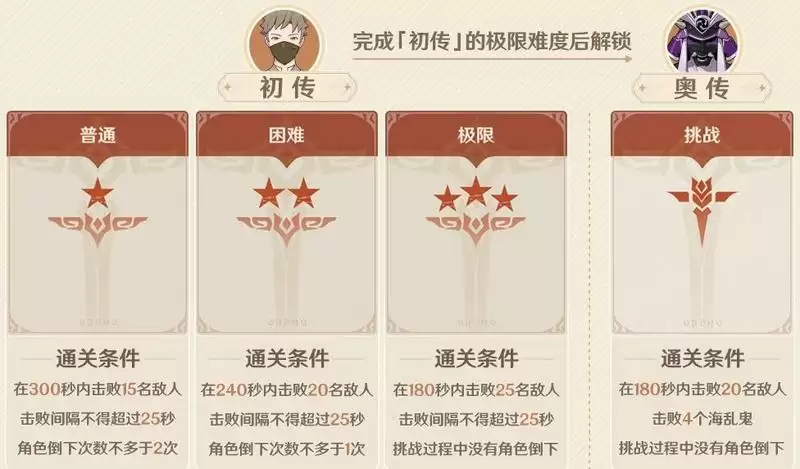 玩家需要达成幻影心流「初传」模式的「极限」难度挑战后,才可以解锁「奥传」模式的挑战。
