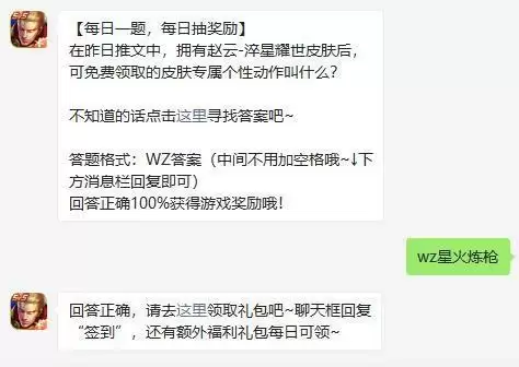 在昨日推文中,拥有赵云-淬星耀世皮肤后,可免费领取的皮肤专属个性动作叫什么
