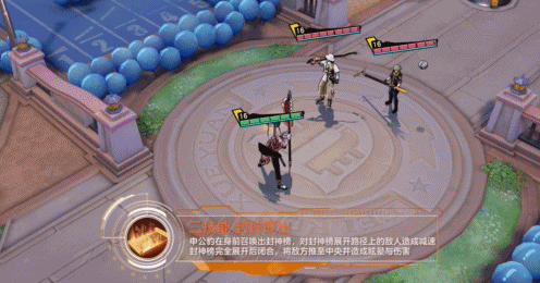 申公豹在身前召唤出封神榜,对封神榜展开路径上的敌人造成减速,封神榜完全展开后闭合,将敌方推至中央并造成眩晕与伤害。