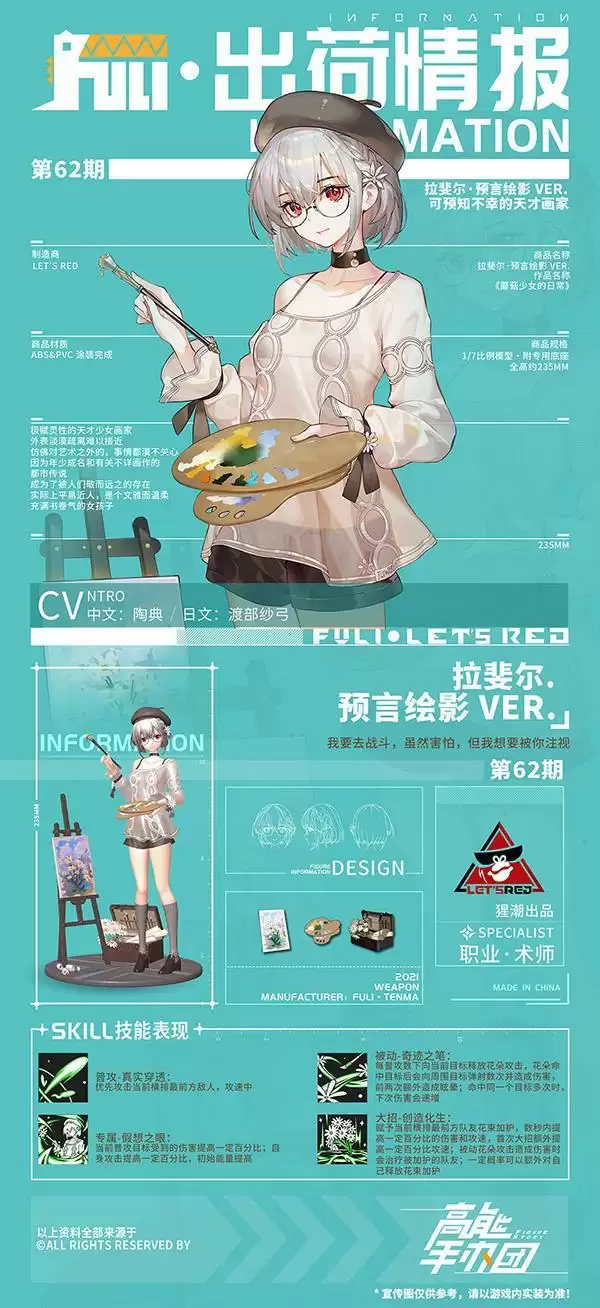 拉斐尔手办由FULI旗下猩潮事业部设计,本次以术师身份加入手办团。关于拉斐尔的技能详细介绍如下: