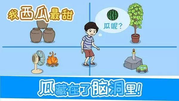 《我西瓜最甜》继承了一代切西瓜的玩法,需要玩家通过线索,推理找到藏起来的西瓜,并且将西瓜顺利切开,游戏玩法很简单,通过一定的推理即可顺利通关,当然,有些关卡还是需要脑洞大开。