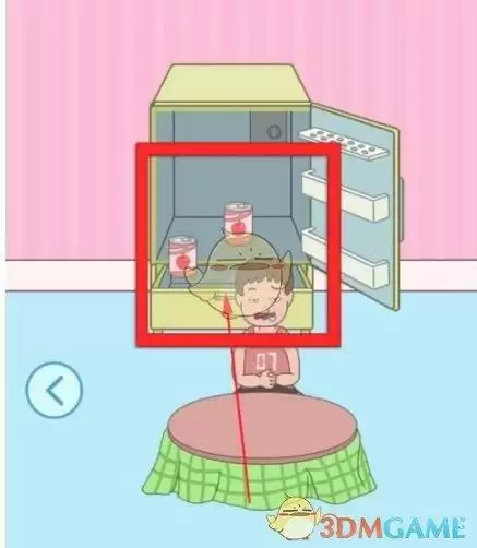 1、去右边场景,打开冰箱,把冰箱里的两罐饮料给男孩喝掉。