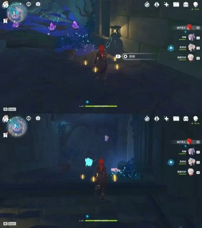 此处机关控制上方的屏障和此处的屏障,两个屏障交换存在(h色)(下图为上方屏障打开)