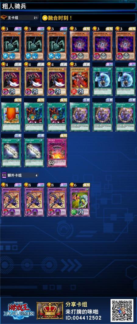 咒印生物暗:核心需要3,配合粗人2卡出骑兵,也可以手融,非常快速有效,抢时间针对对面火焰翼人+挚爱英雄组合